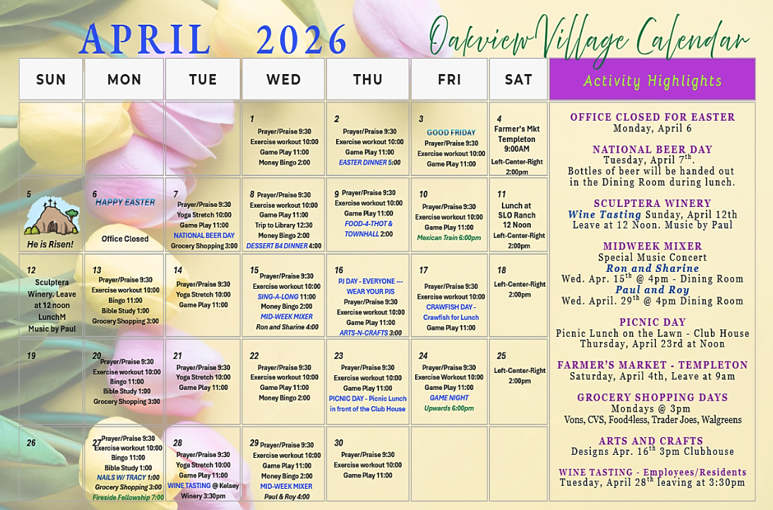 Back to All Events April 2026 Activity Calendar Wednesday, April 1, 2026 12:01 AM Thursday, April 30, 2026 11:59 PM Google Calendar ICS